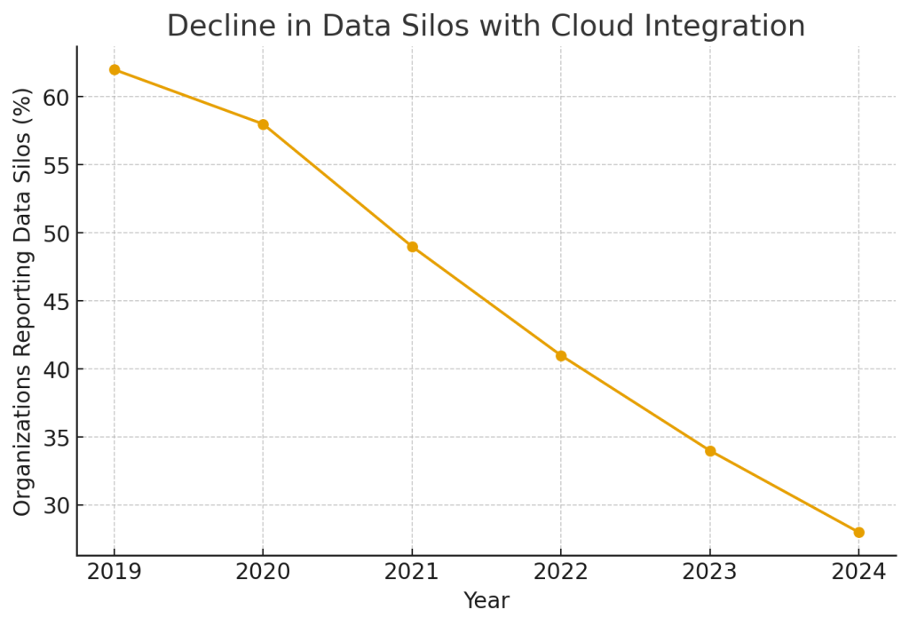 Below is a trend visual showing how organisations reporting data silos have significantly dropped with the rise of cloud-first architectures: